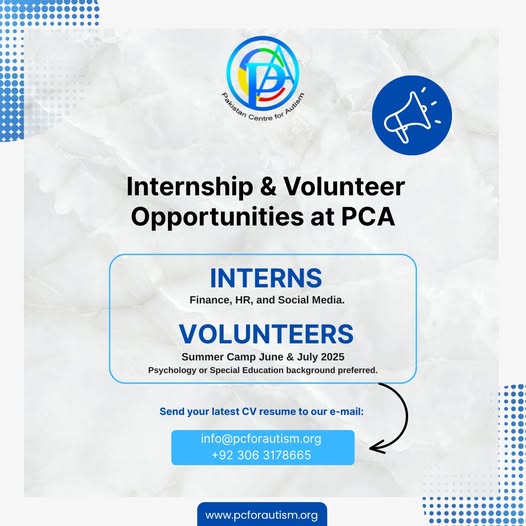 Pakistan Centre for Autism (PCA) is seeking a dedicated Speech & Language Therapist to support children with Autism…